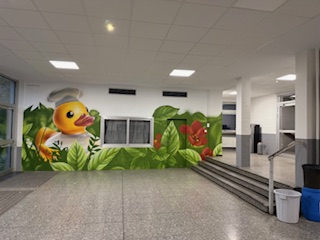 Durch diese gelungene Zusammenarbeit konnten wir unsere Aula nicht nur verschönern, sondern auch das Wohlbefinden aller am Schulleben Beteiligten steigern. Der Raum wirkt nun moderner, freundlicher und bietet eine Atmosphäre, in der man sich gerne aufhält – sei es in Pausen, bei Schulveranstaltungen oder bei besonderen Anlässen.