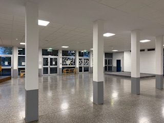 In den Herbstferien hat unsere Aula eine umfassende Verschönerung erhalten – und das Ergebnis kann sich wirklich sehen lassen!
